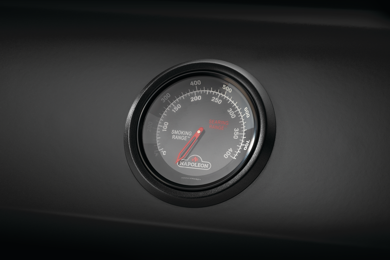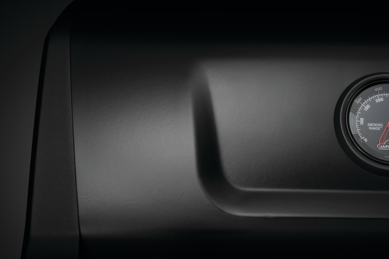 Termometr ACCU PROBE jest wbudowany w pokrywę i niezawodnie pokazuje temperaturę wewnątrz grilla gazowego w skali do 400 ° C.