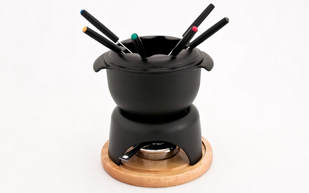 Dla miłośników serów i czekolady mamy Founde, w różnych kolorach emaliowanego żeliwa z drewnianą podstawą.