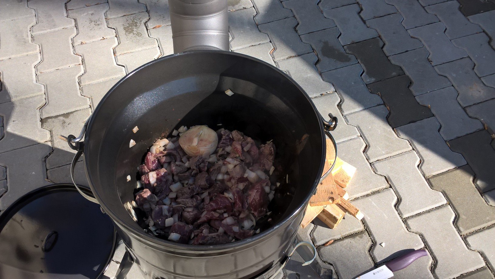 Kociołek firmy Thorma dostosowany jest do dań o konsystencji płynnej czyli nie zalecamy w nim zrobić np. duszonek, próby przyrządzania duszonek co prawda były udane, ale trzeba było bardzo uważać żeby nie przypalić potrawy, co nie jest sprawą łatwą. W ofercie sklepu www.grille-bielsko.pl znajdziecie Państwo specjalne żeliwne kociołki przystosowane do takich potraw. W kociołku Thorma przyrządzane były takie dania jak: różnego typu bogracze, zupy, parzybrody tzn. kapusta na żeberkach, bigos, fasolka po bretońsku, gulasze. W związku z tym, że kociołek ma dużą pojemność, chcąc korzystać z całej pojemności należy dobrze dostosować ilość składników i przypraw. Podpowiadam, że zwykły garnek duży na którym gotujemy w domu ma przeważnie ok 6-7 litrów i przyrządzimy w nim zupę dla kilkuosobowej rodziny na 2-3 dni, więc chcąc uzyskać taki efekt w kociołku mnożymy ilość składników i przypraw razy dwa, jeśli kociołek ma być wykorzystany dla większej ilości osób trzymamy się wersji domowej i wykorzystujemy tylko połowę garnka. Niektóre potrawy wymagają wcześniejszego podsmażenia np. boczku lub cebuli, nie ma problemu, przed zalaniem wodą spokojnie możemy zrobić to w garnku, należy najpierw rozpalić w kociołku po czym dolać dość szybko tłuszczu, ponieważ garnek szybko złapie temperaturę a następnie zaopatrzyć się w drewnianą łyżkę bądź łopatkę i energicznie mieszać aby nic nie przypalić. Trzeba zwrócić na to szczególną uwagę ze względu na to, że w palenisku nie mamy żadnej regulacji i drzewo spala się w swoim tempie raz płomieniem raz tylko żarem. Aby zabezpieczyć garnek przed zadrapaniami należy używać tylko i wyłącznie drewnianych mieszadeł! Dostępne na rynku akcesoria spokojnie będą odpowiednie do głębokości garnka i bezproblemowo sięgną dna aby dokładnie wymieszać naszą potrawę. Chciałabym polecić Państwu kilka autorskich przepisów kulinarnych na pyszne i zdrowe jedzonko z kociołka Thorma, pierwszym będzie aromatyczny, ostry bogracz z wołowym mięsem dojrzewającym.
