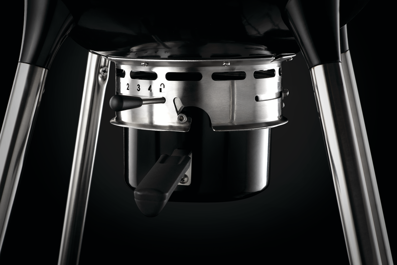 Wyposażony w ruszt o średnicy 57 cm i standardowo wbudowany termometr w pokrywie ACCU PROBE ™, dzięki któremu zawsze masz pod kontrolą temperaturę. Po grillowaniu popiół można łatwo wyjąć z dużego, wyjmowanego pojemnika na popiół i wyrzucić. Dzięki dwóm dużym, odpornym na warunki atmosferyczne kołom z gumowym bieżnikiem, grill można łatwo przenieść w żądane miejsce, a dzięki czterem przykręcanym nóżkom grill ma stabilną podstawę.