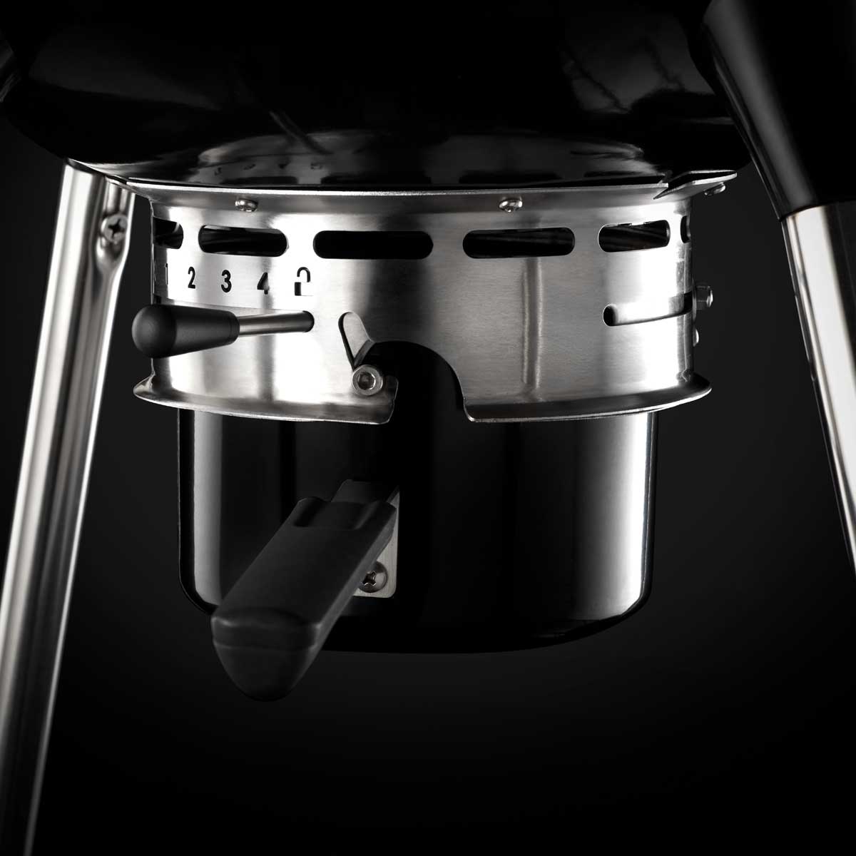 Dzięki zaworom wentylacyjnym w pokrywie i popielniku można w sposób ciągły regulować przepływ powietrza, a tym samym precyzyjnie regulować temperaturę w komorze gotowania. Te łatwe w obsłudze suwaki wentylacyjne wykonane ze stali nierdzewnej pozwalają na zastosowanie szerokiego zakresu temperatur w celu wykorzystania szerokiej gamy opcji przygotowania z grillowaniem bezpośrednim i pośrednim, od wysokiej do niskiej temperatury.
