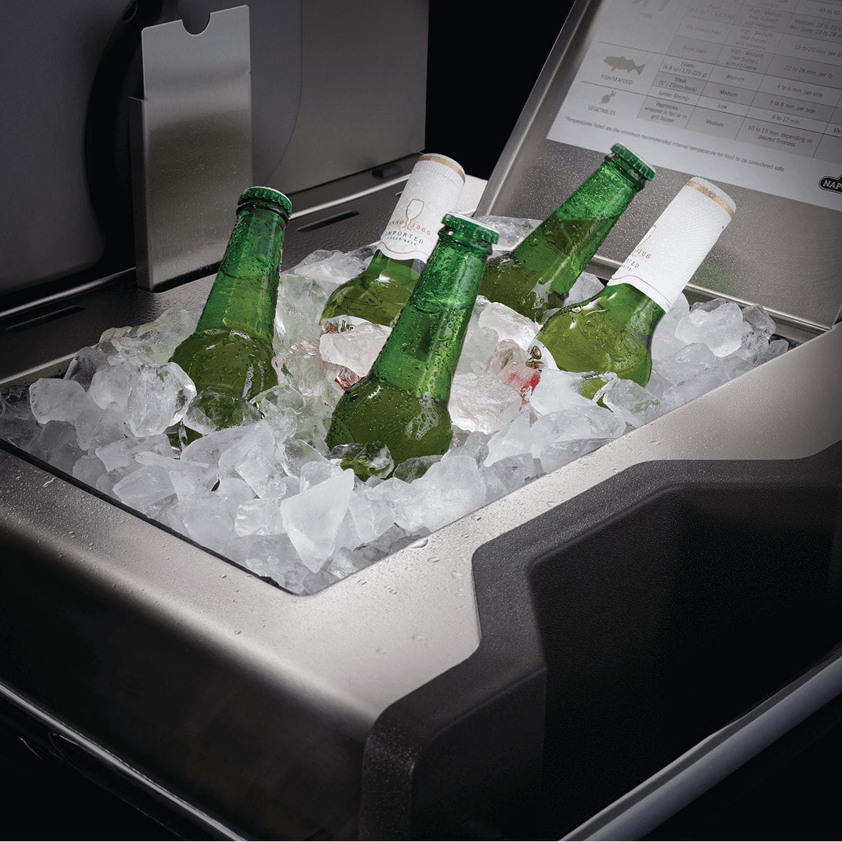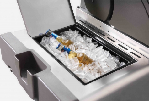 ICE BOXWbudowany schładzaczZ boku grilla znajduje się zintegrowany schładzacz, który idealnie nadaje się do chłodzenia napojów, którym można delektować się podczas grillowania z najbliższymi. Jeśli zdecydujesz się wykorzystać ten obszar bardziej do przygotowywania posiłków, użyj specjalnej zintegrowanej deski do krojenia. |