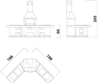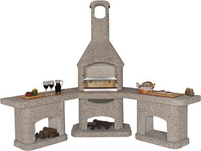 Przed paleniskiem znajduje się wykonany ze stali nierdzewnej ogranicznik uniemożliwiający wydostawanie się opału poza palenisko oraz blat wyłożony płytkami mrozoodpornymi.