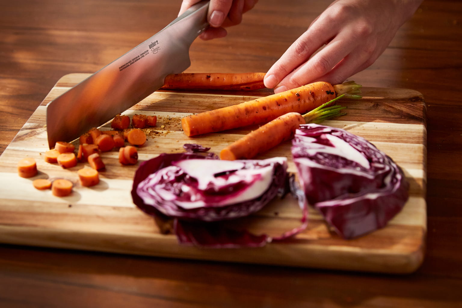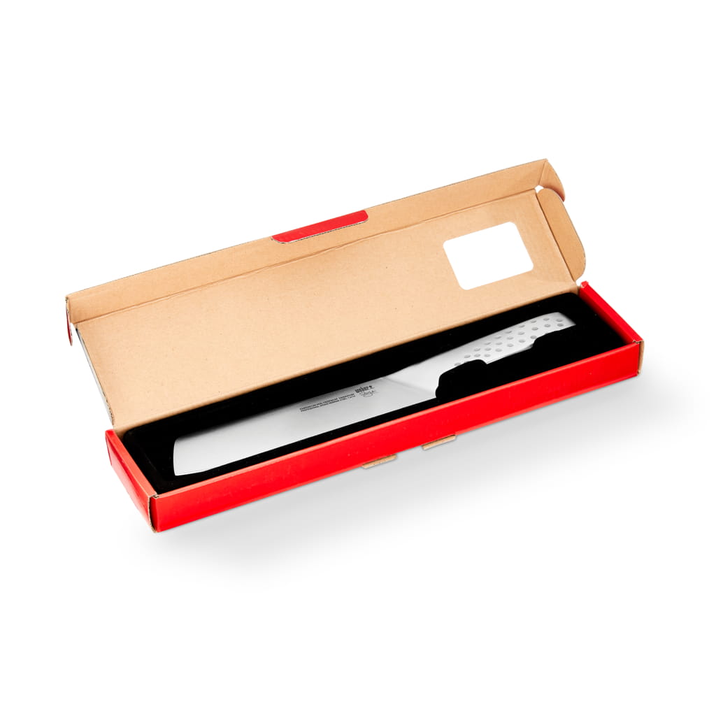 Siekanie odbywa się szybko i łatwo za pomocą luksusowego noża do warzyw wykonanego z wysokiej jakości stali nierdzewnej o eleganckim wyglądzie pasującym do każdej kuchni.