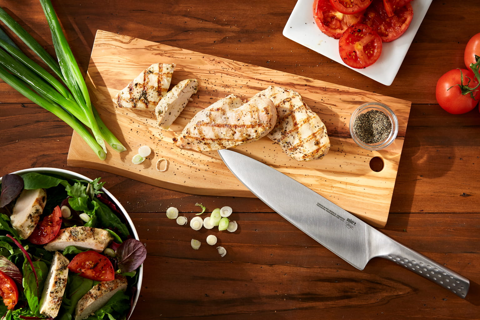 Żadna kuchnia nie jest kompletna bez odpowiedniego noża szefa kuchni. Luksusowy nóż szefa kuchni wykonany jest ze stali nierdzewnej i zapewnia funkcjonalność, bezpieczeństwo i wysoką wydajność. Tutaj masz ergonomiczny uchwyt, dzięki czemu możesz łatwo pokroić grillowaną polędwicę, pieczeń lub kurczaka.