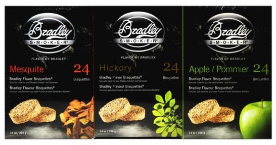 Sekretem wędzarni Bradleya są brykiety -Bradley Bisquettes . Aby wyprodukować brykiety, zrębki drewna liściastego są ze sobą sprasowane w kontrolowanej wartości ciśnienia i gęstości. Aromat dymu zależy od odmiany drzewa z którego pochodzą zrębki.