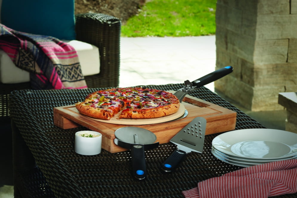 Idealny zestaw dla miłośników pizzy lub tych, którzy chcą nimi zostać. Z zestawem startowym masz wszystko, czego potrzebujesz, aby przygotować idealną pizzę na grillu. Ułóż pizzę na kamieniu do pizzy, a dzięki tarce szybko zetrzesz ser na nią. Pizza może być następnie wkładana i wyjmowana za pomocą podnośnika. Przed podaniem pizzy pokrój wszystko za pomocą radełka do pizzy na małe kawałki i gotowe!